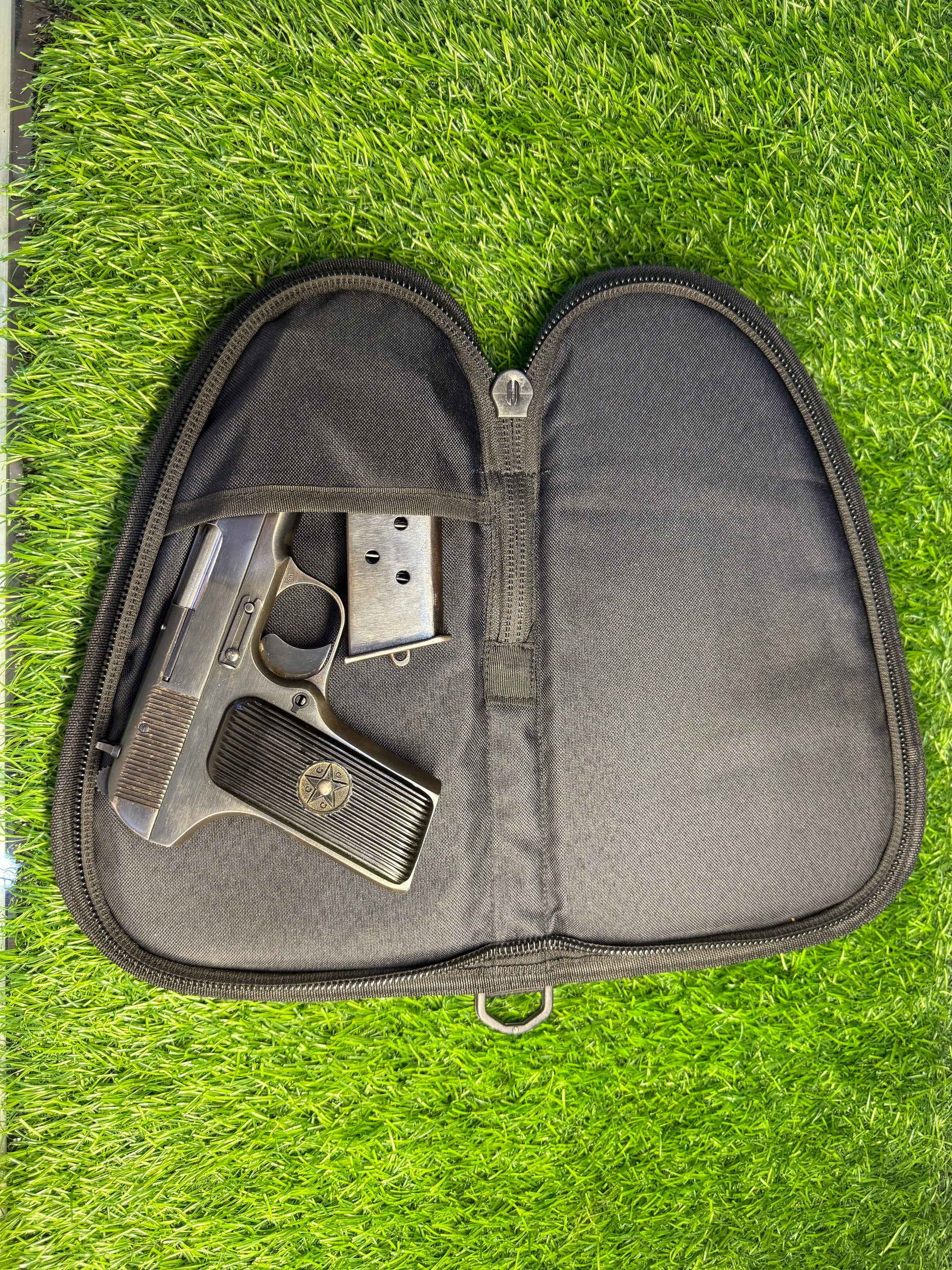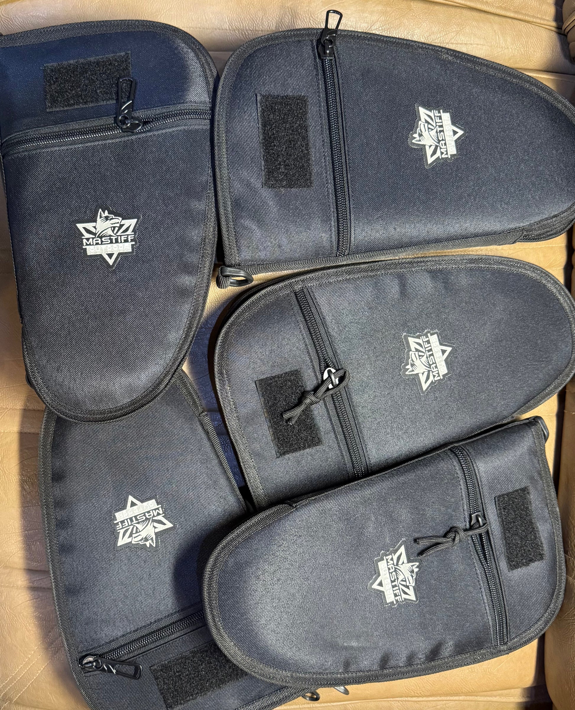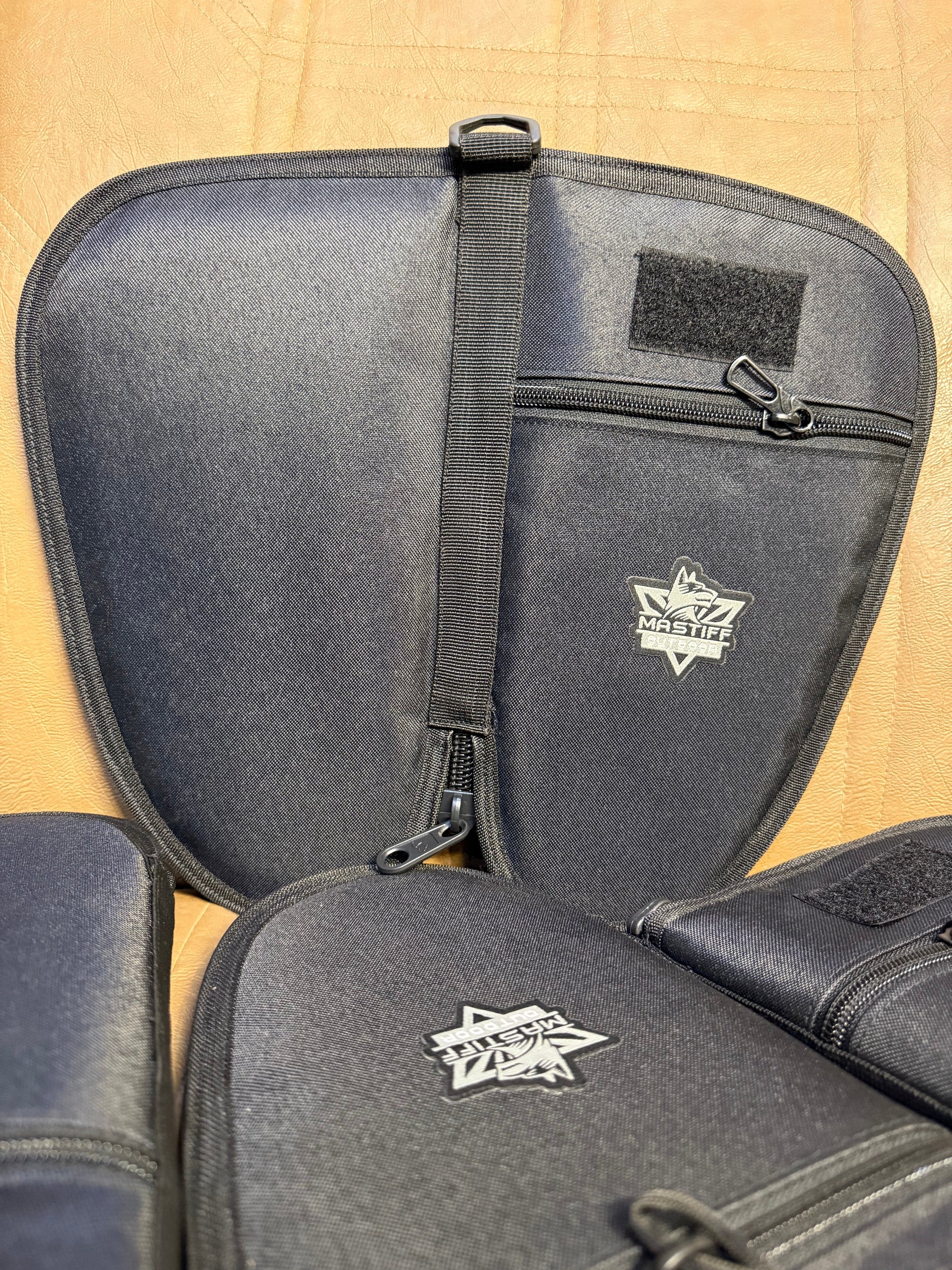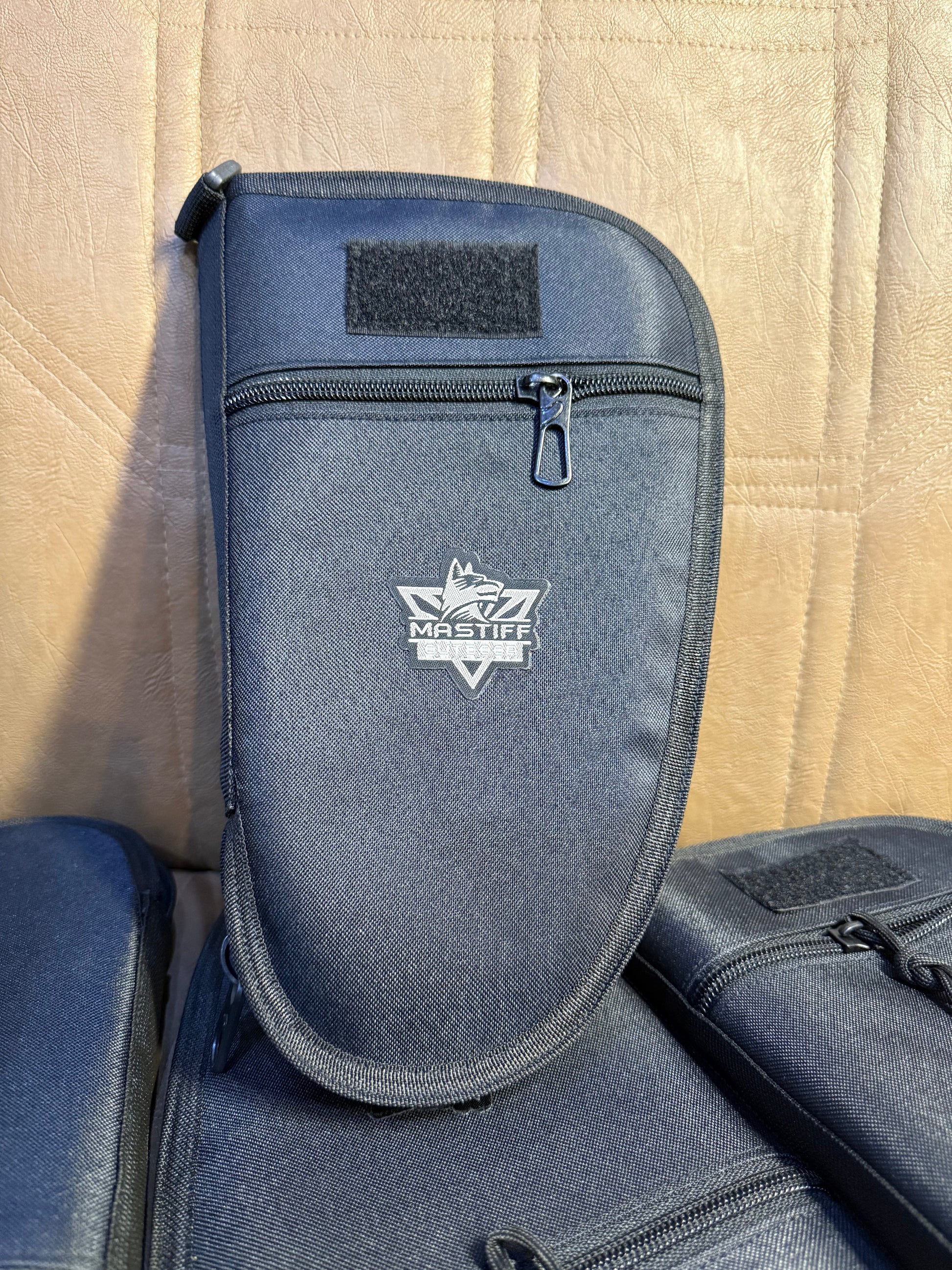 This "Mastiff Outdoor" pistol case is a great way to protect and case your pistol. Built with a paddled design that cushions and protects, it is also equipped with front zipper pouch so you can store your accessories. This pistol case is built with 600 denier polyester material and is water-resistant.